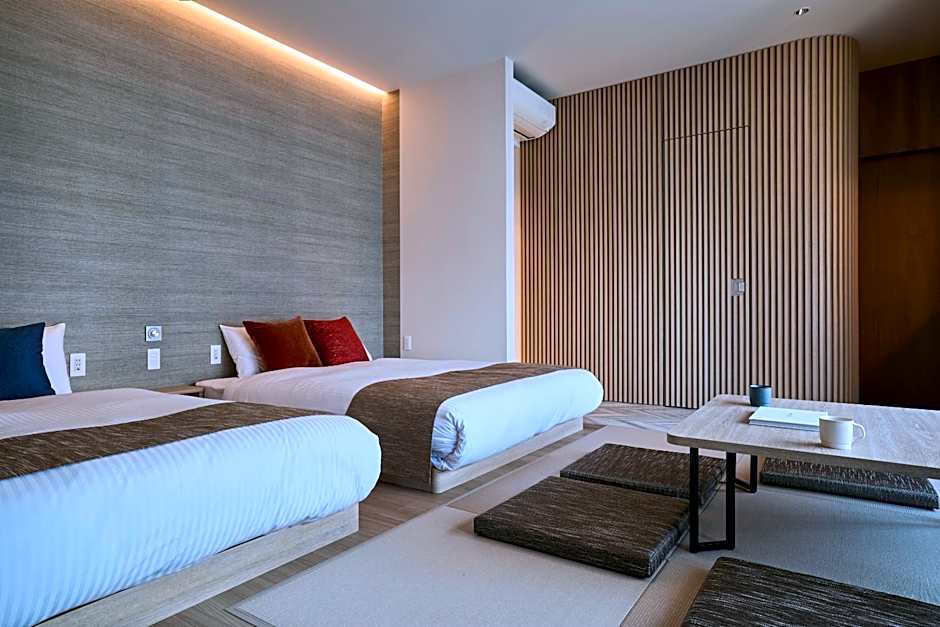 Providing free toiletries, this quadruple room includes a private bathroom with a bath, a shower and a bidet. Guests can make meals in the kitchen that is equipped with a stovetop, a refrigerator, kitchenware and a microwave. The quadruple room features tatami floors, a seating area with a flat-screen TV with streaming services, air conditioning, a washing machine, as well as an electric kettle. The unit offers 2 beds and 2 futons.